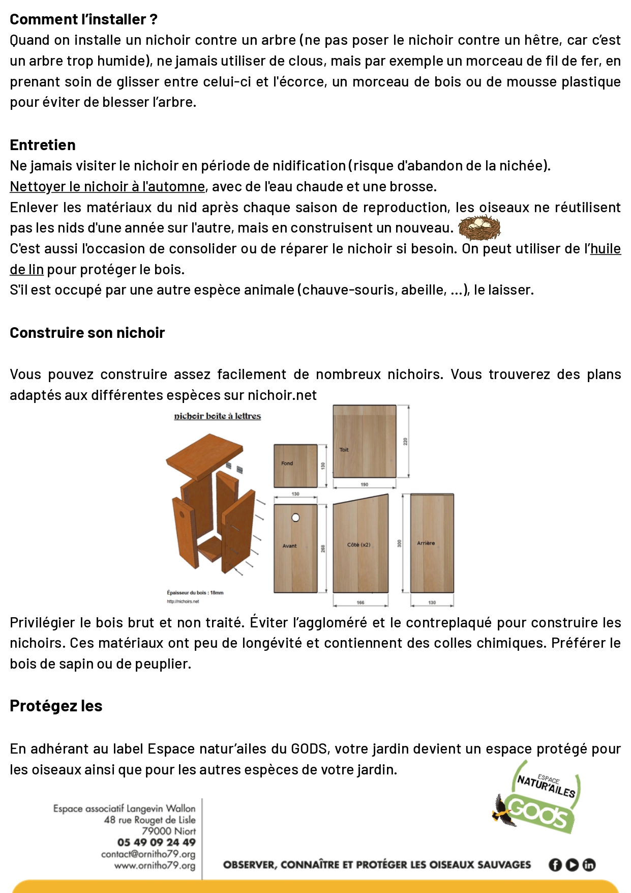 Au programme : sensibilisation, échanges, conseils pratiques et apprentissage des gestes simples pour favoriser l’accueil des différentes espèces et mieux cohabiter avec elles. Installer un nichoir, oui… mais au bon endroit, au bon moment, et avec les bonnes pratiques.